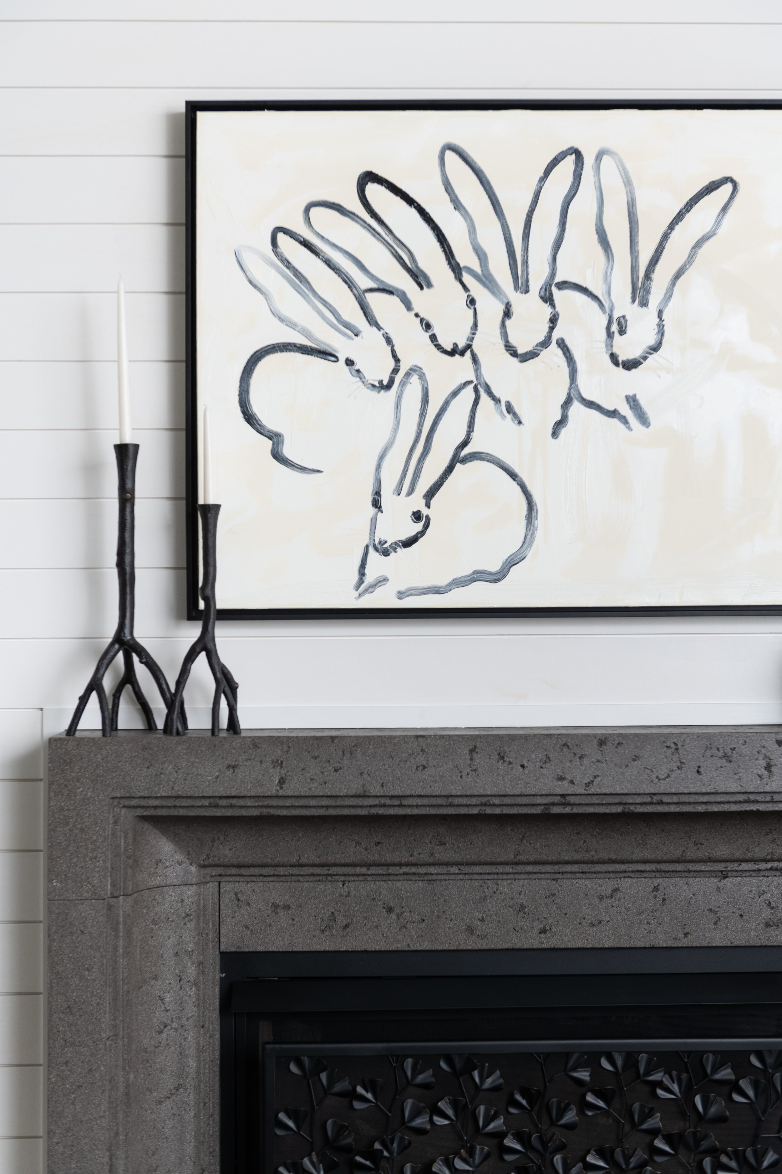 Art plays a defining role in the space. Above the fireplace hangs a striking bunny painting by the client’s favorite artist. Although it was not the first piece the family selected, it became the element that truly brought the room to life, anchoring the space with personality and a confident sense of whimsy.