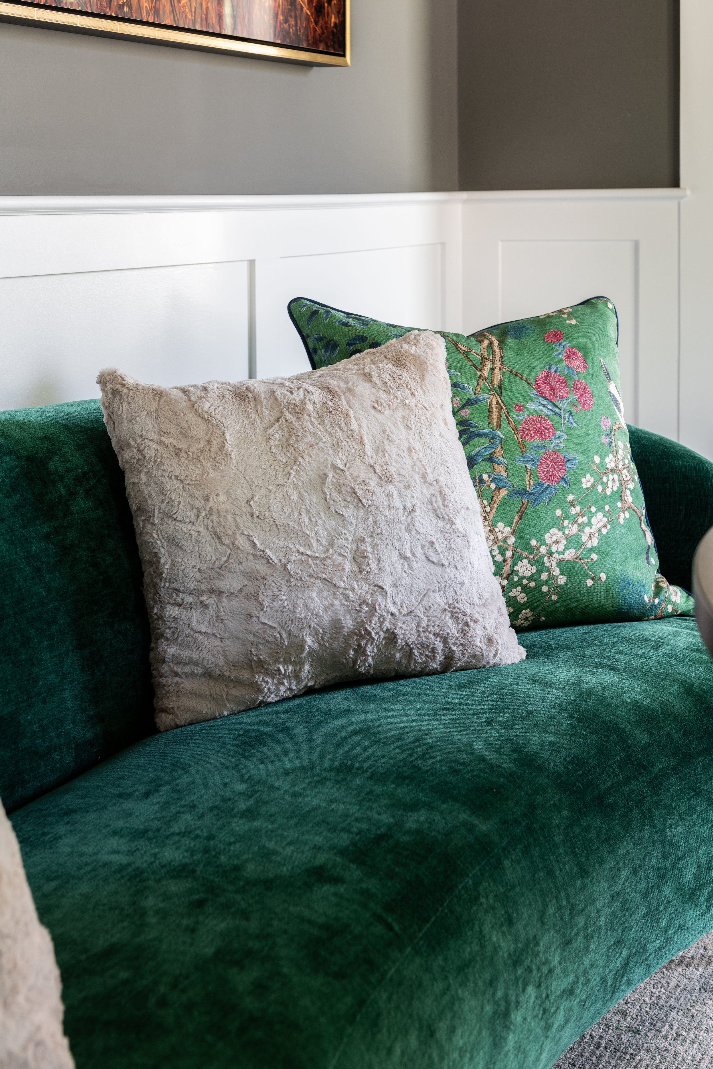 Nature and animals became gentle guiding themes. Soft blues and greens, warm neutrals, and tactile textures created a comfortable, cohesive palette. We incorporated faux bois fabrics, natural materials, touches of faux fur, and nature-inspired art and accessories, thoughtfully woven together with meaningful family photos and mementos.