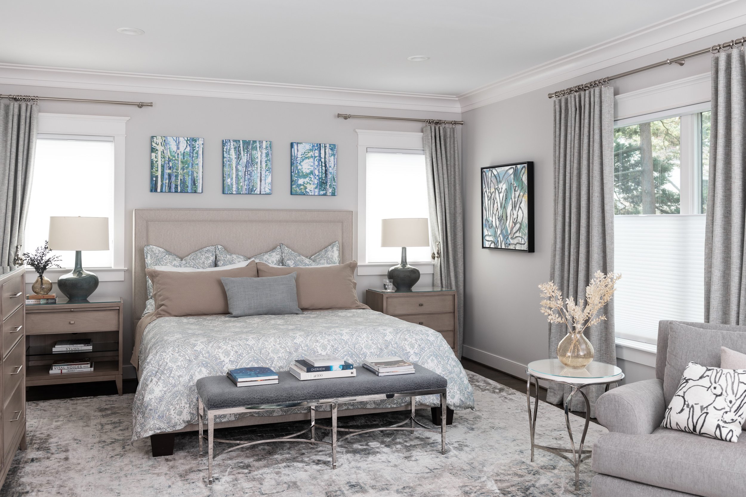 The primary suite was designed as a true retreat. Layered textiles, tailored furnishings, and thoughtful lighting create a space that feels restorative and intentional without becoming formal. It’s calm, comfortable, and provides respite at the beginning and end of each day. A reading nook anchored by an oversized chair creates a cozy spot to enjoy bedtime stories together, adding warmth and intimacy while reinforcing that even a private retreat can hold shared family moments.